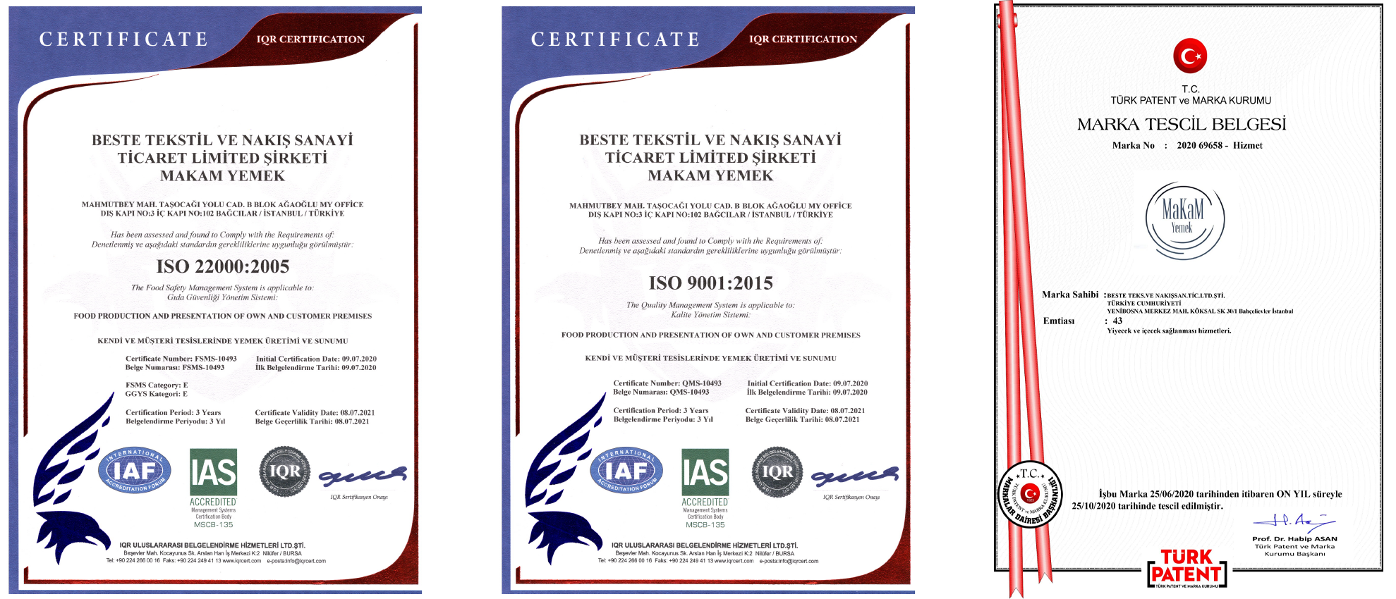 Şahit numuneler düzenli olarak alınır, üretimimiz TÜRKAK onaylı özel mikrobiyoloji laboratuvarlarında analize tabi tutulur. Resmi denetimlerden ayrı olarak, hem kendi tesislerimizde, hem yerinde üretim yaptığımız projelerimizde gıda denetim uzmanlarımız tarafından yapılan ani denetimlerle personel el hijyeni, depolama koşulları ve yemek sunum koşulları kontrol edilerek raporlanmakta, kaliteyi arttırmak adına düzeltici ve önleyici faaliyetler yapılmakta, kurum içi eğitimler verilmektedir.